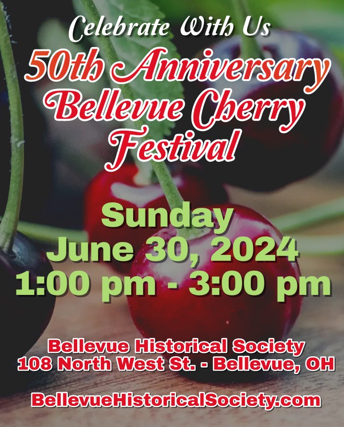 The Bellevue Historical Society will be hosting the 50th Anniversary Celebration of the Cherry Festival, featuring delicious cherry indulgences, festival games with every player receiving a free chance to win a homemade Cherry Crumb pie baked by our own Beth Patten Bailey. Plus, take a trip back through the years and enjoy a nostalgic display of Cherry Festival memorabilia. See you at the celebration!