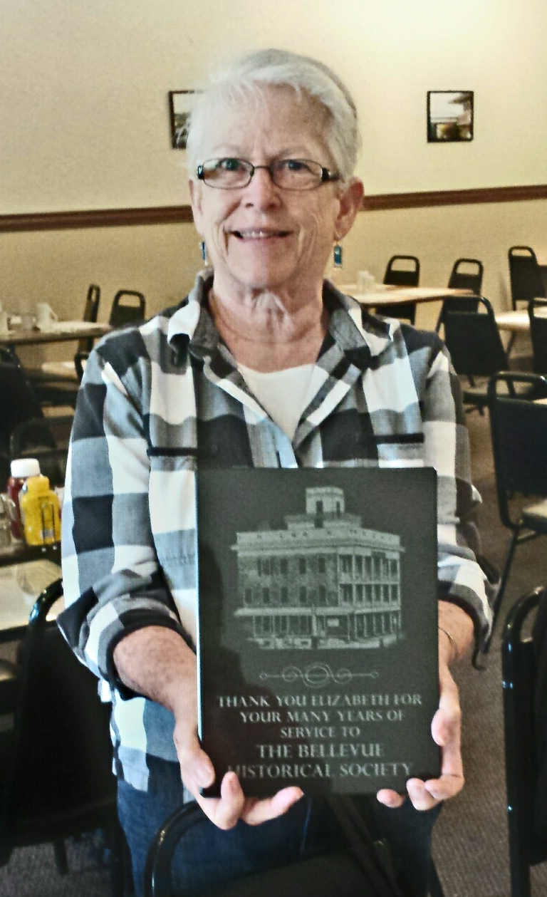 After over twenty-five years on the Board of Directors of The Bellevue Historical Society, Elizabeth Kile announced that she would not be entering her name for reelection at the annual meeting in March. Elizabeth has been a mainstay of the organization and she will be very much missed. However, she still plans to be an active member. She will continue to chair the committee for the Sunflower Sale in July and her shop, The Golden Acorn, on South West Street will still sell items for the Society, including Bill Oddo's books.
