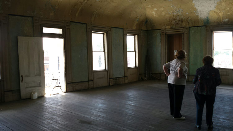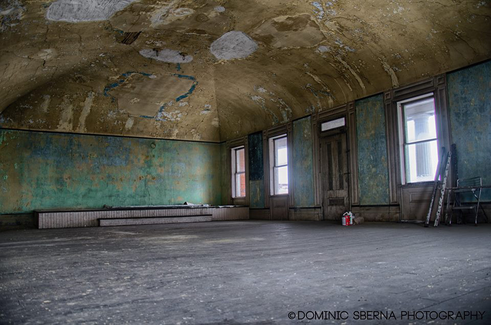 The third floor of the Tremont House boasts a wonderful ball room with vaulted ceiling. This was a community meeting room which would have been very grand in 1846. For many years the International Order of the Odd Fellows (IOOF) met here as well as the Knights of St. John and The Star of Italy fraternal organizations. The fact that there are no supporting columns in the large room indicate that the building must have been built by a master craftsman. After renovation, this room will once again become a meeting room available for community events and private parties.